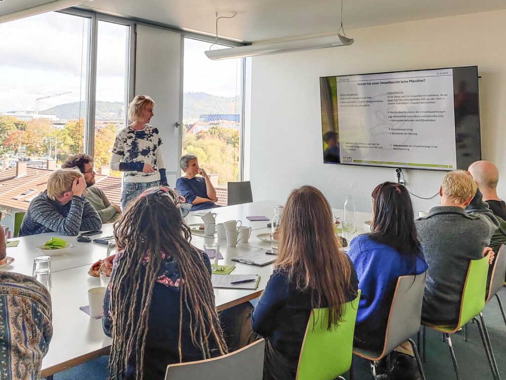 Vor Ort wurden wir herzlich mit Kaffee, Tee und einer Auswahl an Snacks empfangen. Nach einer ausführlichen Kennenlern- und Wiedersehensrunde startete das Programm mit einer Reihe kurzer Vorträge. Unsere Kolleg:innen gaben spannende Einblicke in Themen wie Genehmigungsplanung, die Stiftung Naturschutzfonds Baden-Württemberg und die Honorarordnung für Architekten und Ingenieure.