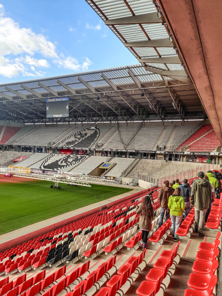 Der Höhepunkt des Tages war der Besuch im Europa-Park-Stadion des SC Freiburg. Bei einer ausführlichen Führung erhielten wir nicht nur Einblicke in den Stadionbau und den Alltag der Spieler:innen, sondern auch in das Nachhaltigkeitskonzept des Vereins.