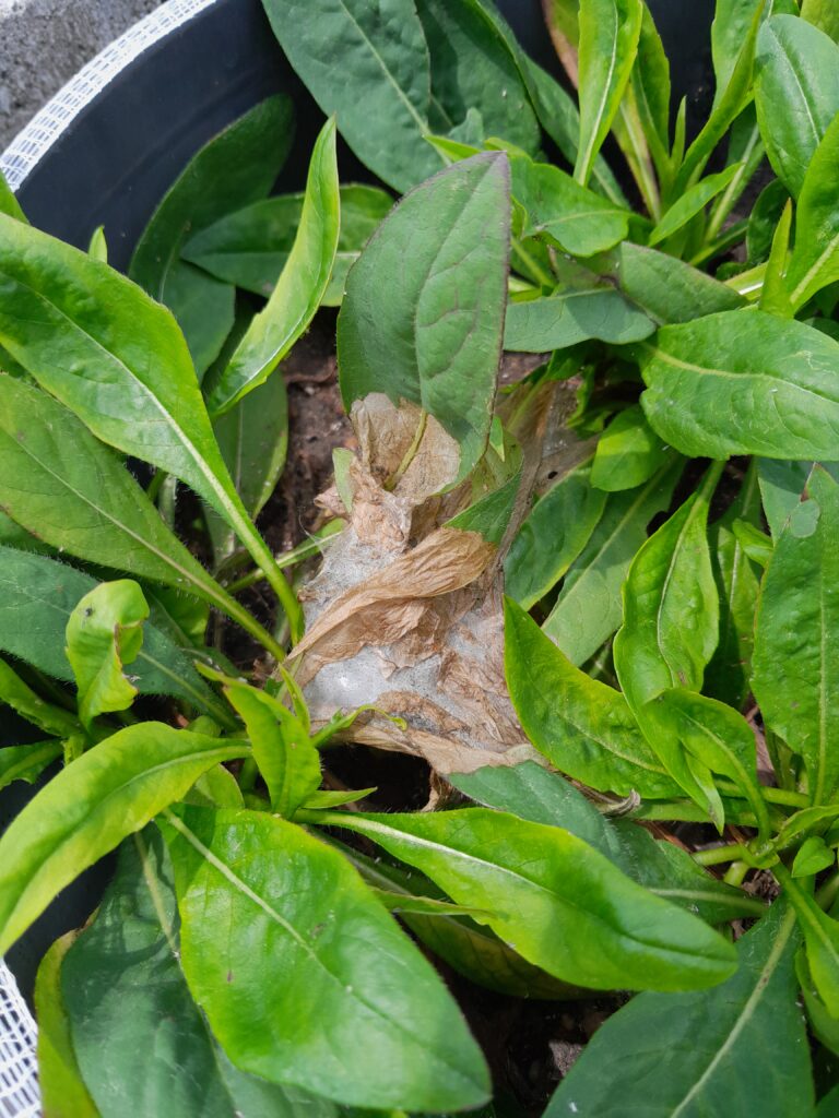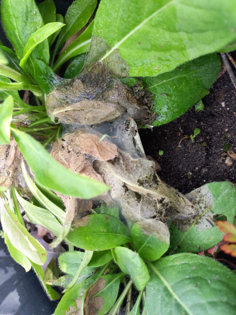 Die Jungraupen entwickelten sich rasch und legten bald ihre ersten Gespinste an, die sich bis Ende Juni über mehrere Pflanzen hinweg ausdehnten. Aufgrund der trockenen Witterung mussten die Töpfe fast täglich gewässert werden, damit die Wurzelballen der Topfpflanzen, die in der freien Landschaft eigentlich in Nasswiesen vorkommen, nicht vollständig austrockneten.