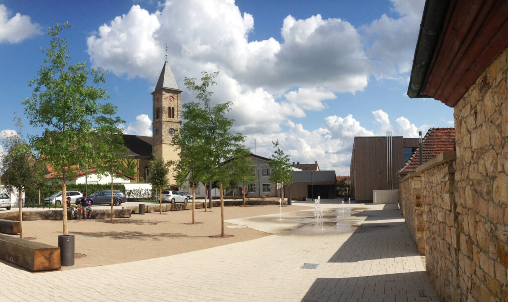 Die Schaffung eines neuen Zentrums als Treff- und Mittelpunkt der Gemeinde – dies war das Ziel der Planung zum Dorfplatz Kronau. Häufig fehlen den kleineren Gemeinden der Region identitätsstiftende Freiräume. Umso bedeutender wurde die Konzeption eines öffentlich zugänglichen Treffpunktes und Veranstaltungsortes für kleinere Festlichkeiten. Durch den Abriss von Gebäuden in zentraler Dorflage bot sich die Möglichkeit, diesen inmitten des Ortskerns zu realisieren. Nachdem das angrenzende Forsthaus mit dem dazugehörigen Forstgarten saniert wurde, konnte mit der Überplanung der Freifläche begonnen werden.