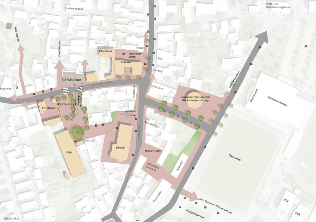 Erbrachte Leistungen: Bestandsaufnahme mit Analyse, Strukturplan Ortsmitte, Bebauungsplan »Forstgarten«, artenschutzrechtliche Vorprüfung, Freiflächenplanung Dorfplatz Lph. 1–8