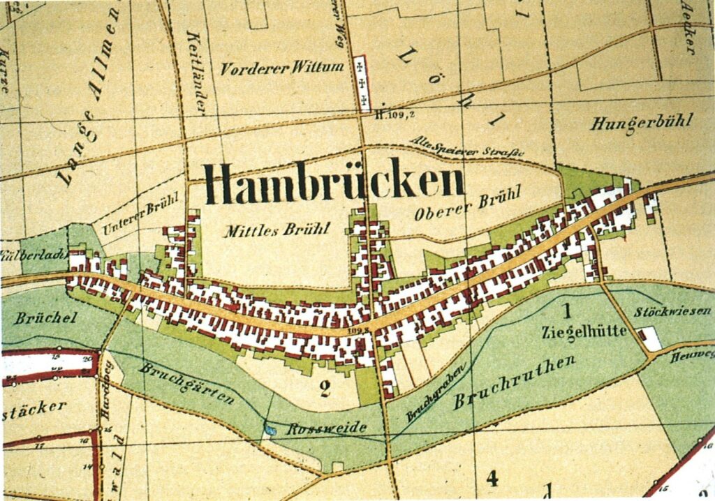 Hambrücken hat sich als für die Gegend typisches Straßendorf entwickelt. Seit seinen Siedlungsanfängen, die mindestens bis ins Jahr seit seiner ersten urkundlichen Erwähnung 1161 zurückreichen, ist dieser reine Straßendorfcharakter bis Anfang des 20. Jahrhunderts erhalten geblieben. Eine Erhaltungssatzung soll dazu beitragen, diese ortstypische durchgehende Bebauung an den beiden Hauptstraßen zu bewahren.